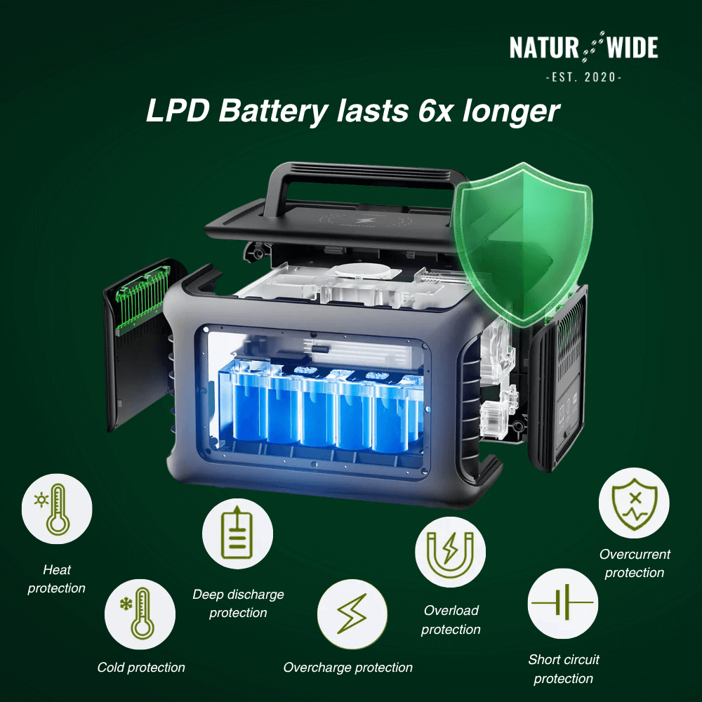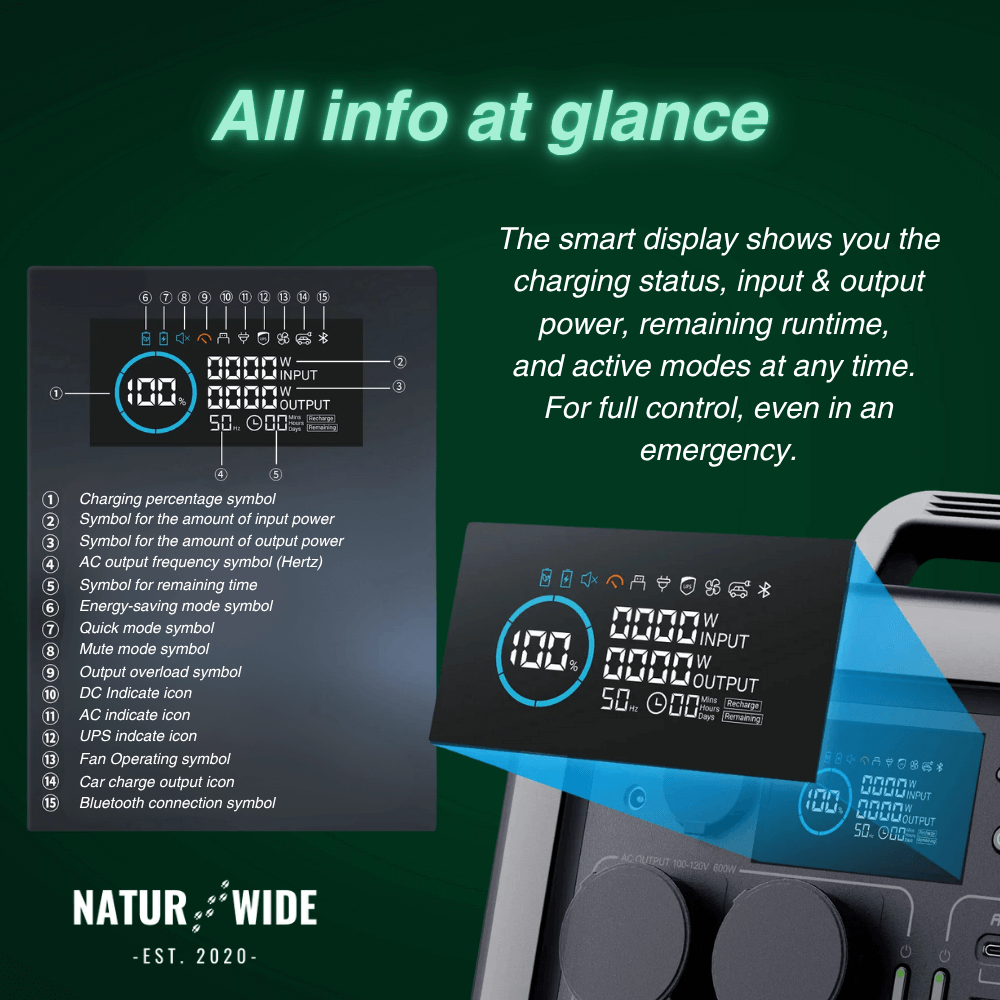Equipped with a long-lasting LiFePO4 battery, 2× AC outlets, 2× USB-C, USB-A, 12V car outlet, and wireless charging – maximum flexibility indoors & outdoors.